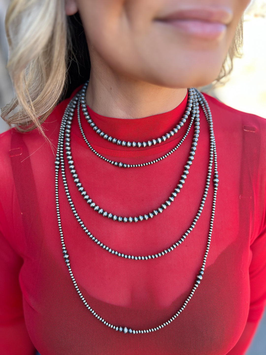 Genuine Sterling Silver Navajo Beaded Necklaces - Various Sizes