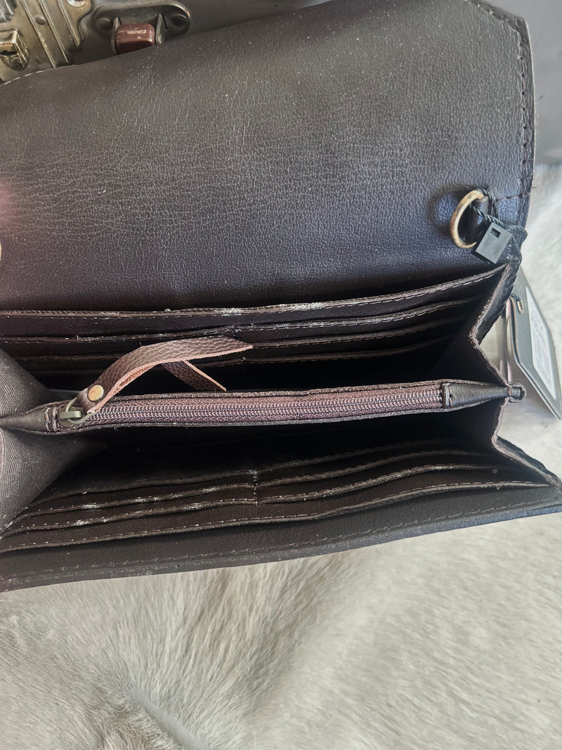 Stand out with the American Darling Sunset in Tucson Wallet Crossbody! This 8" x 5.5" crossbody is crafted with tooled leather, featuring a beautiful floral design and painted leather finish. The snap closure keeps your belongings secure, while the 48" removable crossbody strap offers versatile carrying options. Be the talk of the town with this unique and stylish accessory!