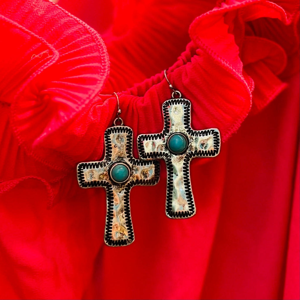 Silver Cross Concho Earrings
