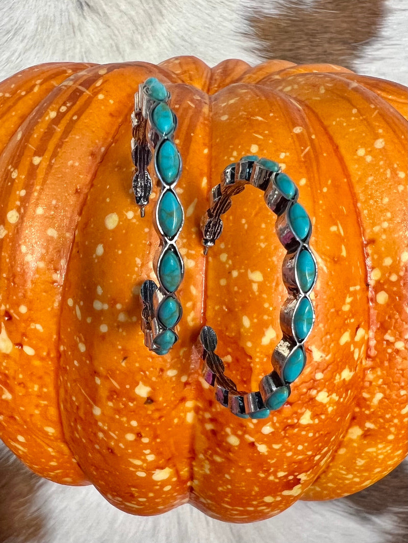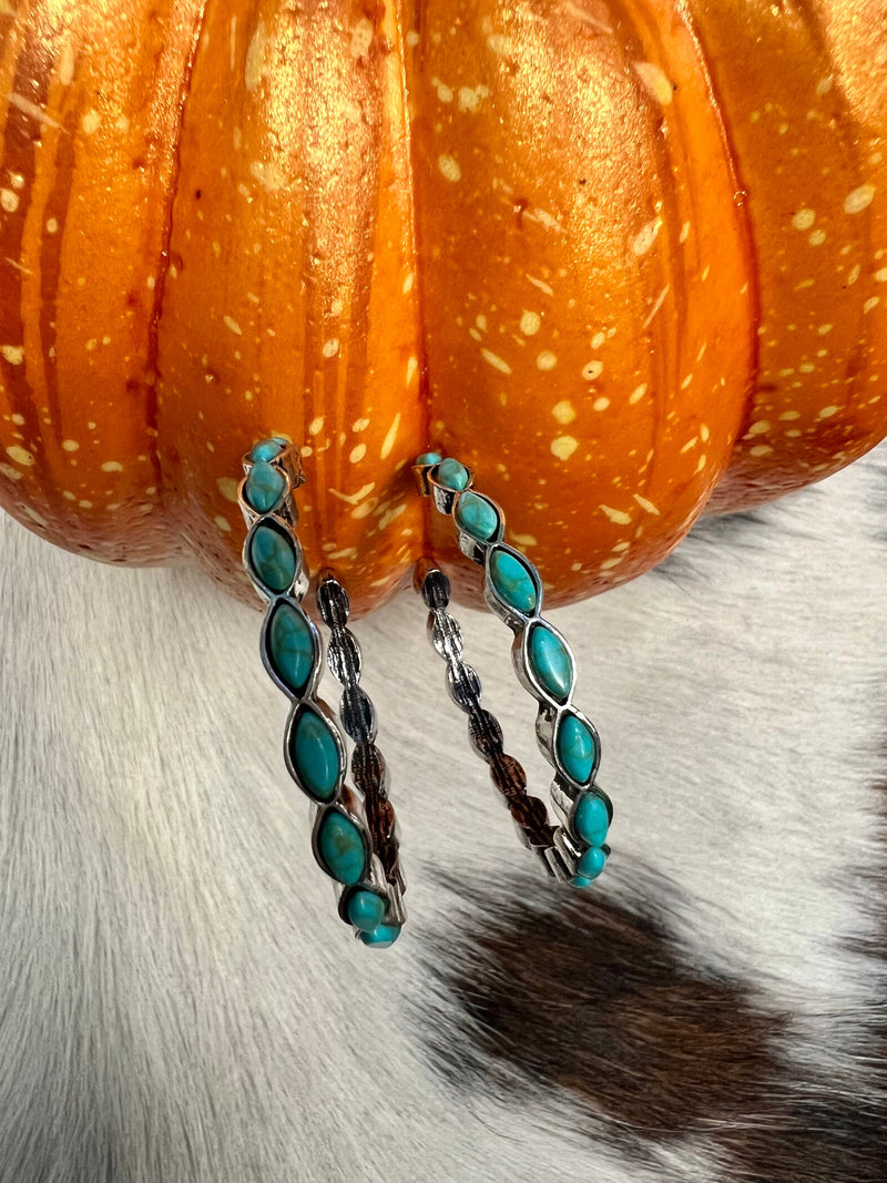 Introducing Hoops of Stones Earrings! With three western-inspired color choices, these 2" hoops are a stylish and convenient way to accessorize. Whether you're dressing up or down, these nickel-free earrings will be your go-to accent. Add some flair to your style with these chic and comfortable hoops!