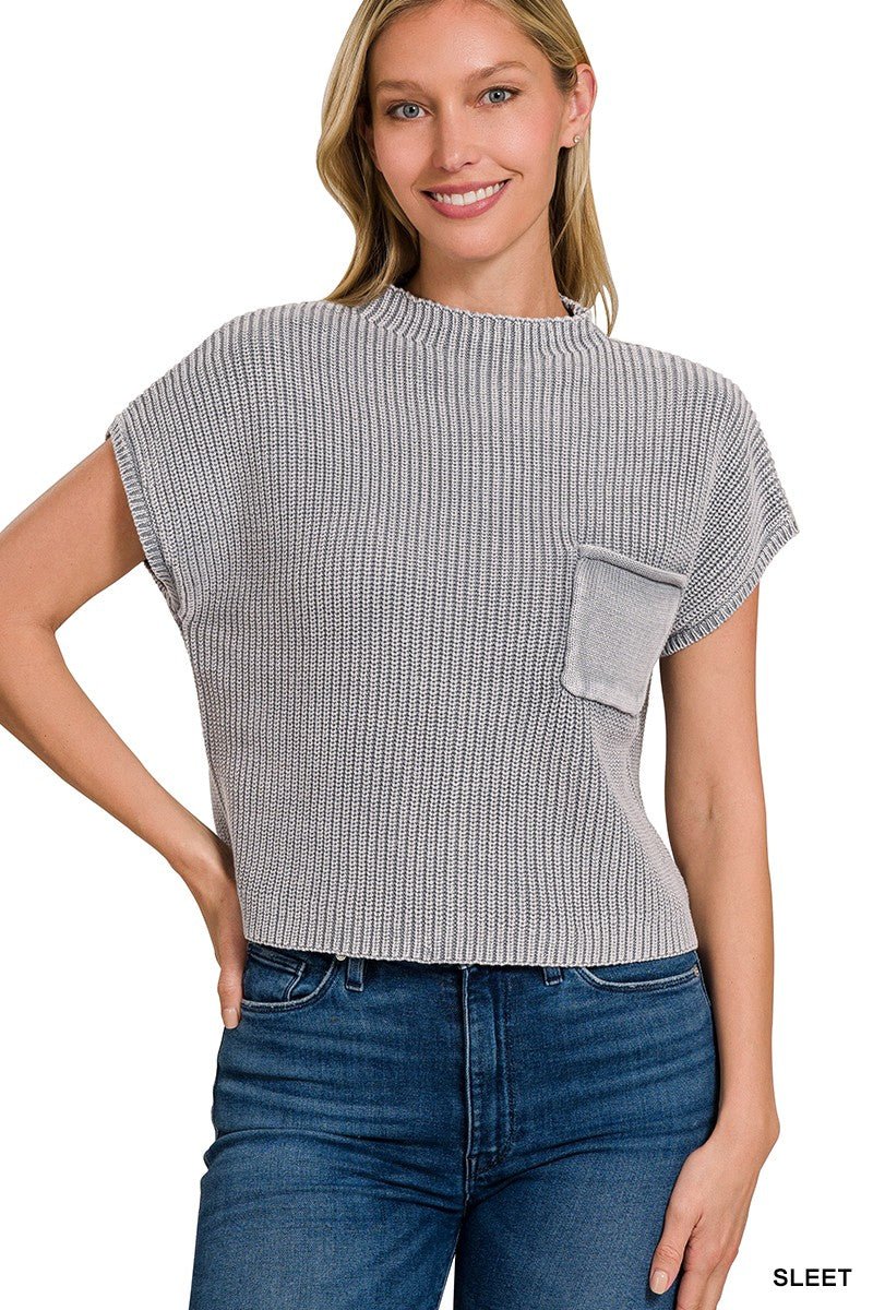 Washed Mock Neck Cropped Sweater Vest Top | Gussied Up Online