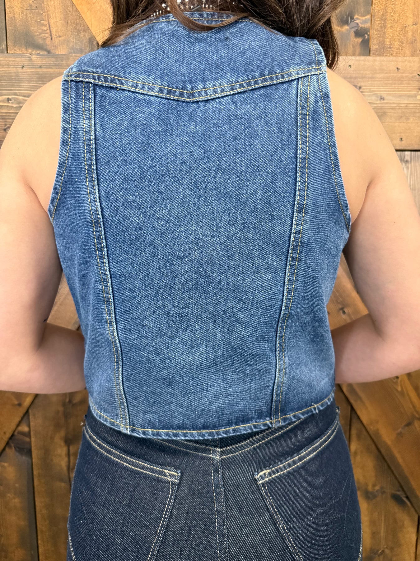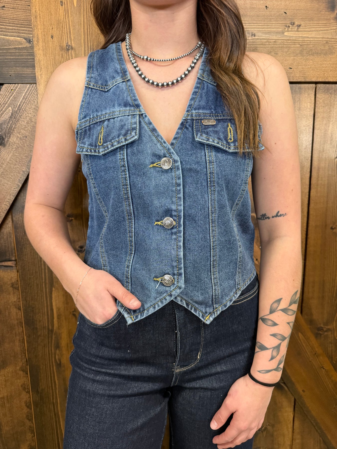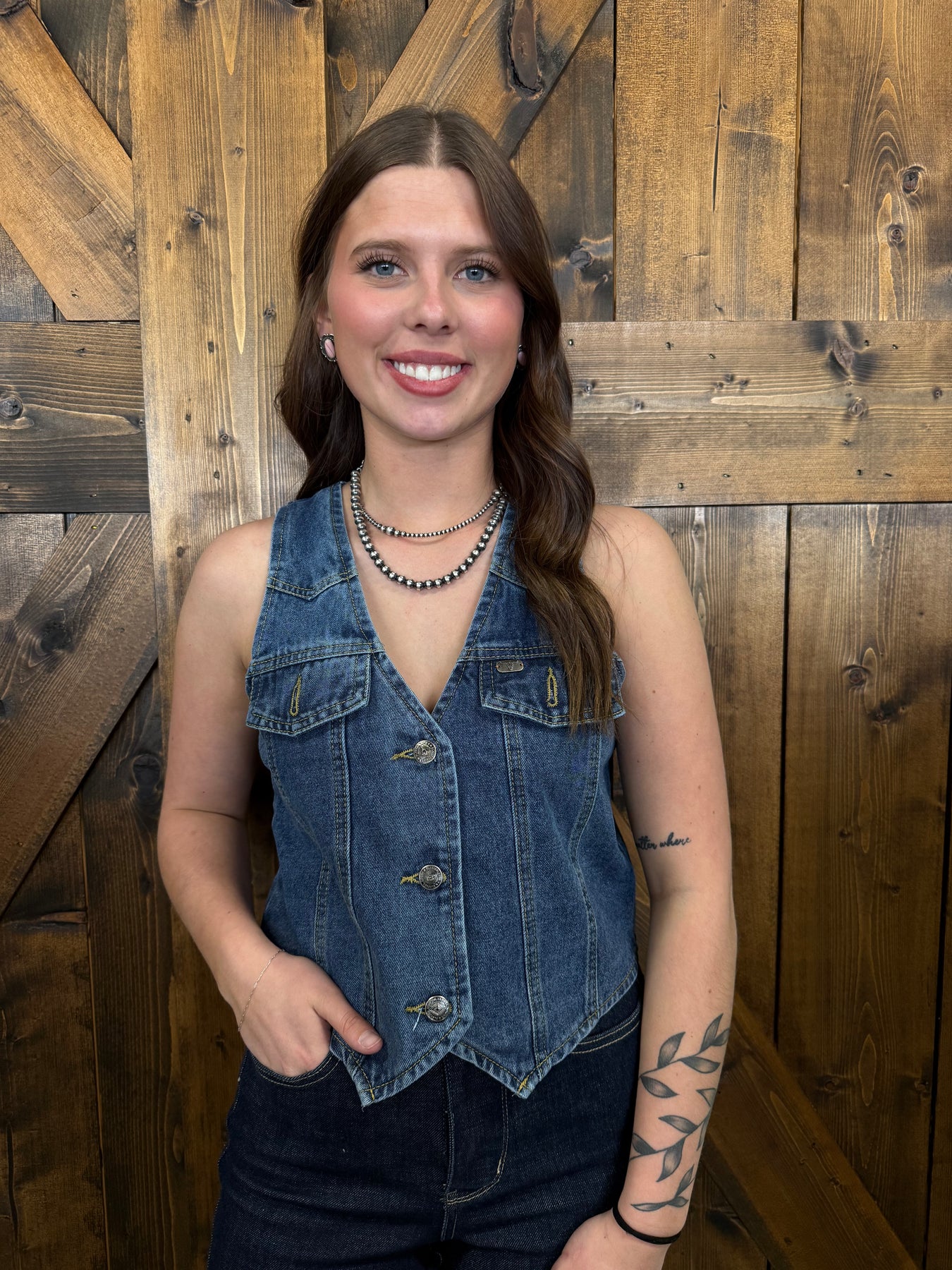 L&B Classic Mid Wash Button Down Denim Vest I Gussied Up Online Boutique