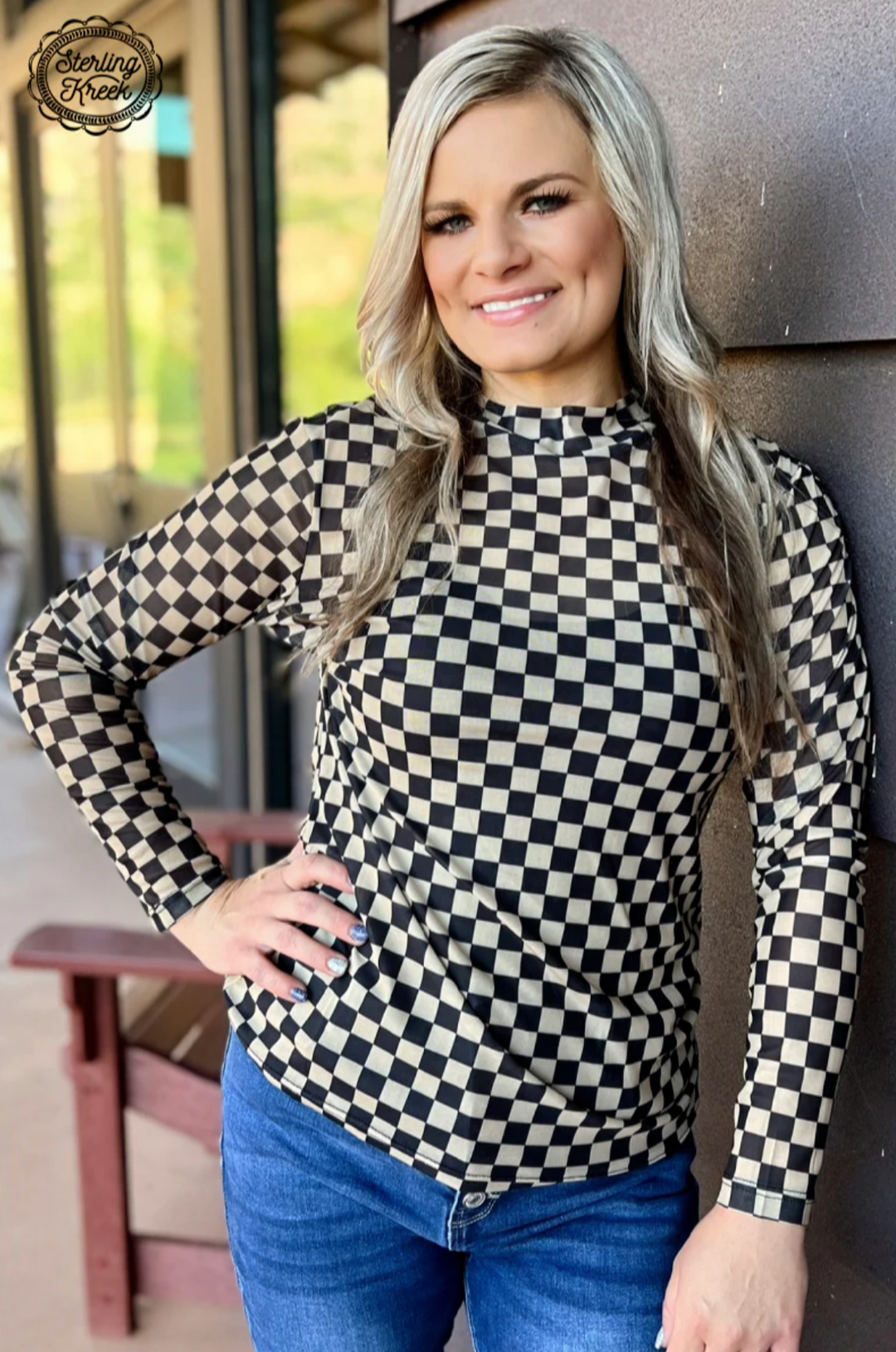 Sterling Kreek Checked In Maroon Mesh Top