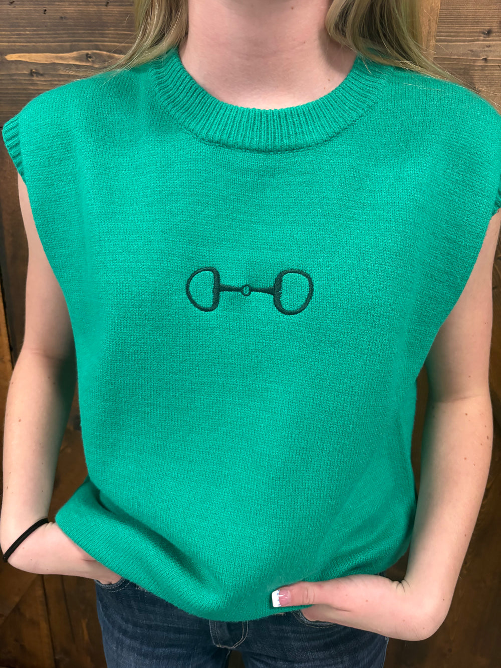 Horse Bit Embroidered Short Sleeve Sweater Top