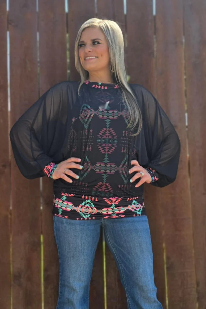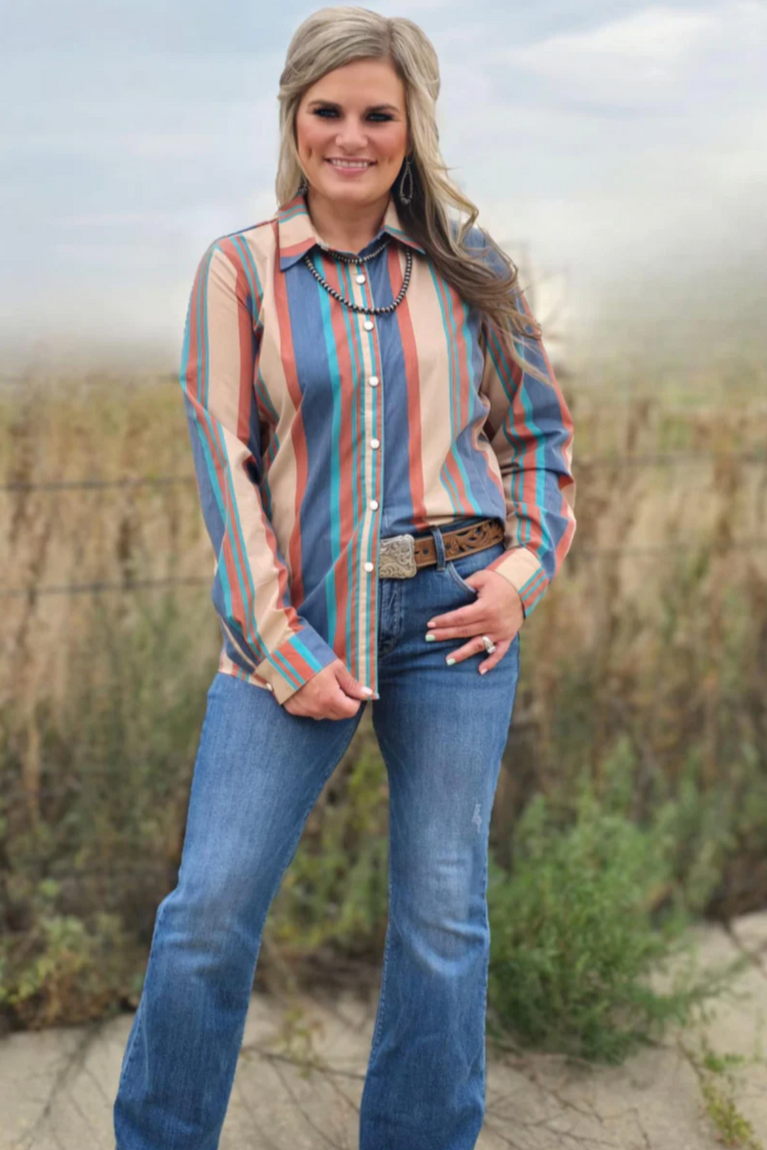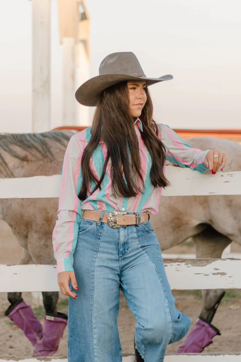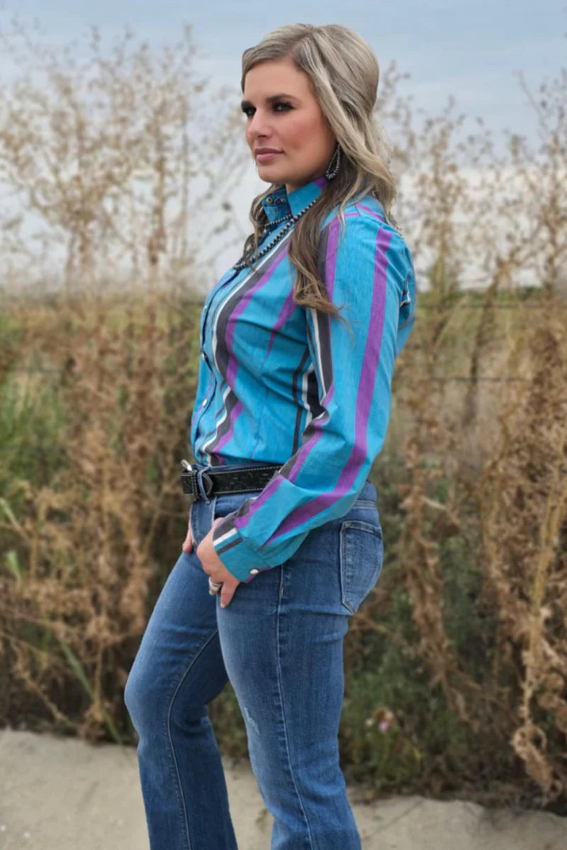 Sterling Kreek Checked In Turquoise Long Sleeved Top