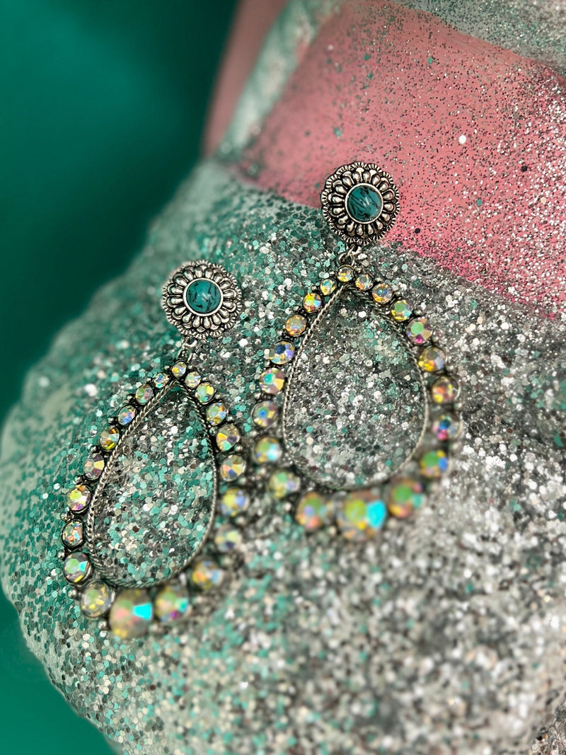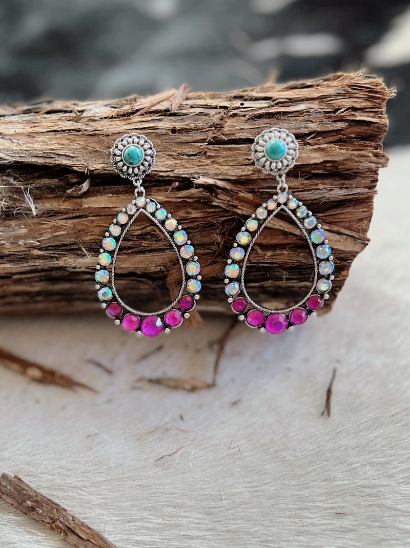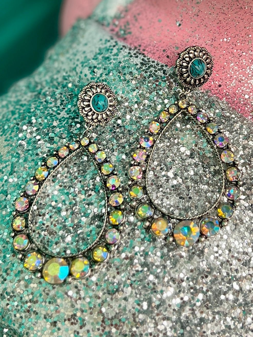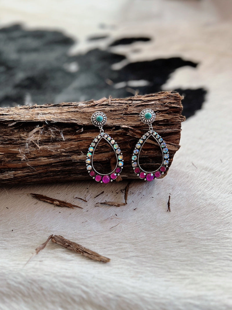 Get ready to elevate your western style with our Boujee Western Earrings! 2 Color Choices in these high polish earrings feature a unique concho flower design with pops of pink, iridescent, and turquoise stones for a touch of glam. With a secure post back and dangle feature, you'll be sure to turn heads with these playful and stylish earrings. Yeehaw!