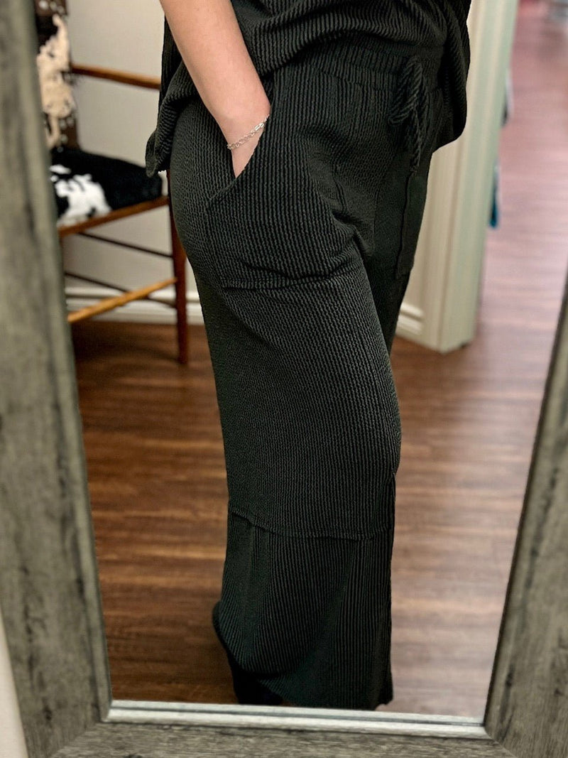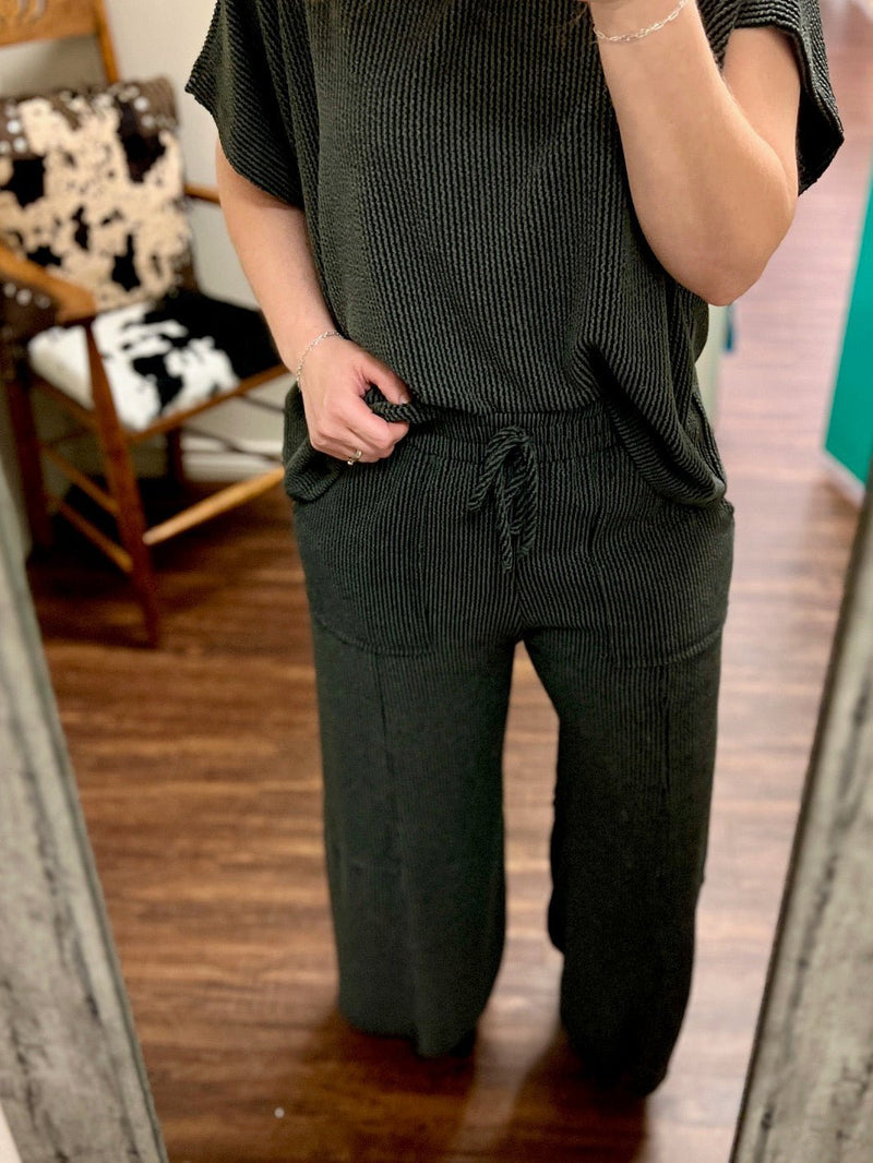 Get ready to elevate your summer look with the Charcoal Kick Back Lounger Pants. Made from soft, terry cloth fabric, these stretchy ribbed pants are not only super comfortable but also incredibly stylish. The perfect addition to your wardrobe for a day at the beach or a casual hangout with friends.