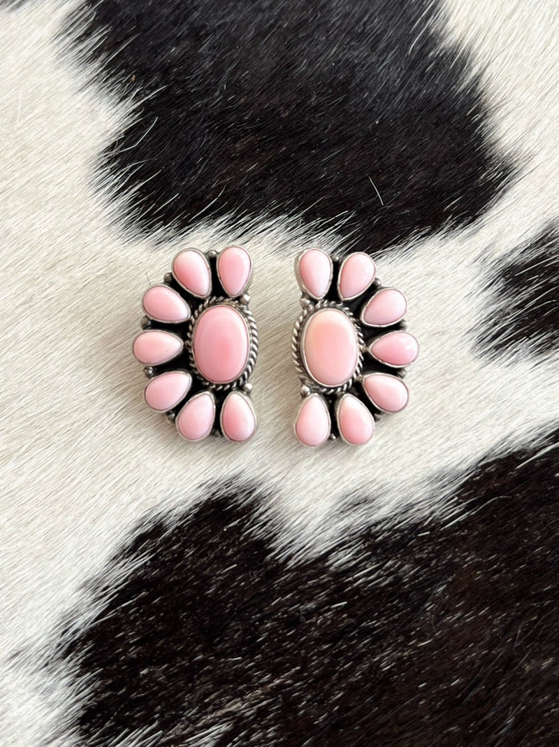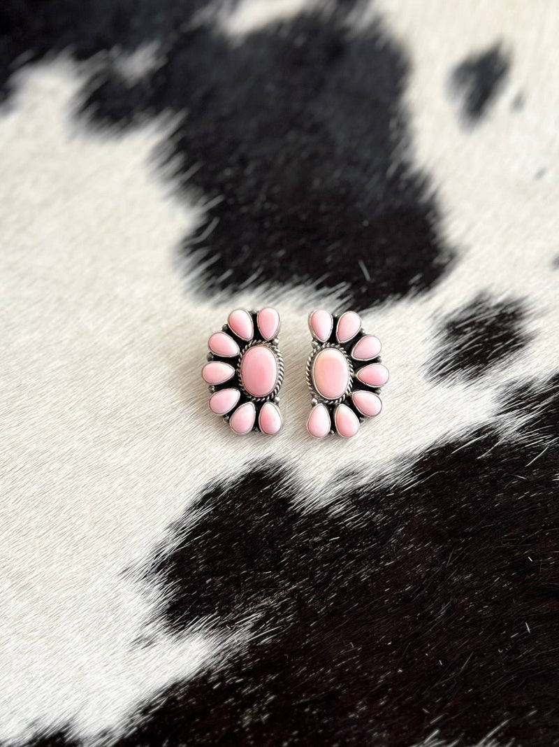 These Betta's Navajo Handcrafted Sterling Earrings feature genuine opal stones and a cluster setting, expertly fashioned together by hand in sterling silver. The perfect accessory for the stylish and sophisticated, these are a timeless addition to any wardrobe.