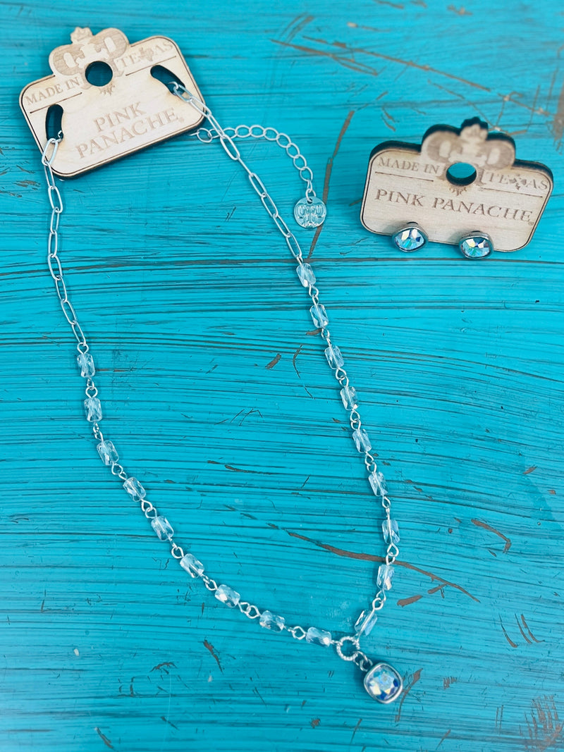 Make a statement with the Panache Vegas Lights Necklace. Featuring a trendy 16" paper clip chain, delicate silver accents, and sparkling clear beads, this necklace is perfect for any occasion. Plus, the 1/4" iridescent stone adds a touch of glamour. Easily adjust the length with the 3" lobster clasp extender. Shine on!