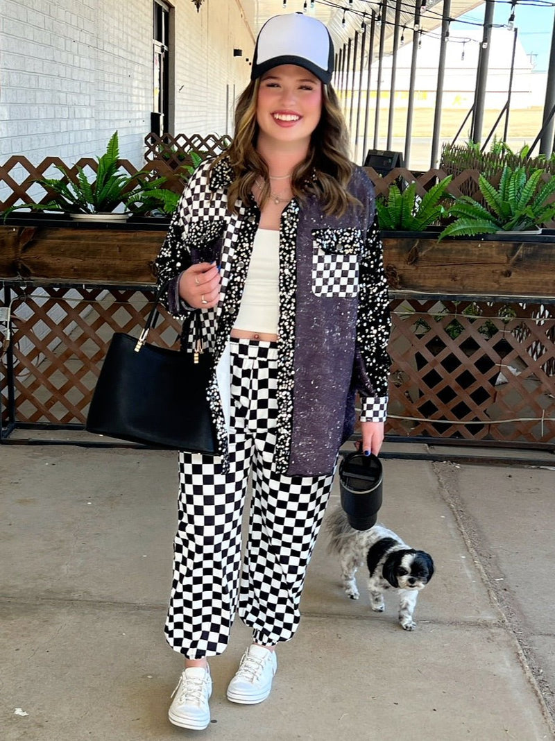 Get ready to race in our Round The Track Joggers! These checkered joggers will keep you looking stylish while you sprint to the finish line. With a comfortable fit and unique pattern, these joggers are perfect for any casual day out.