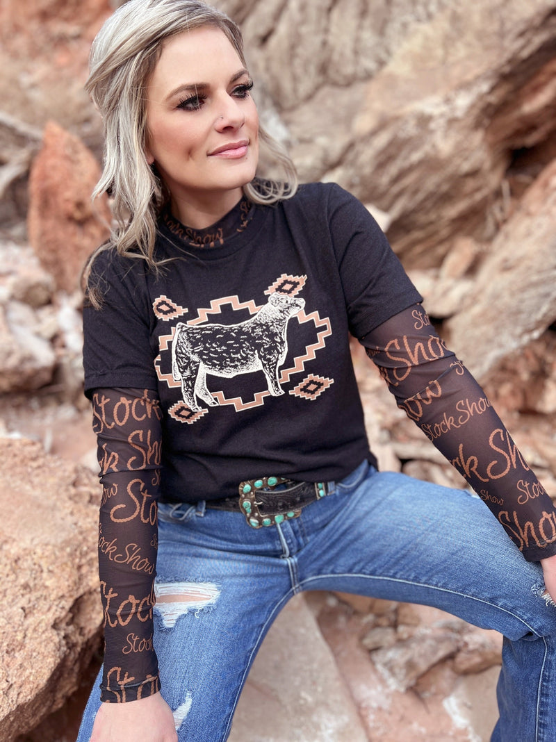Unleash your inner stock show queen with our cute mesh top featuring a rope letter design. Not only does it make a statement, but it's also comfy and perfect for all your stock show needs. Step into the ring with confidence and style!
