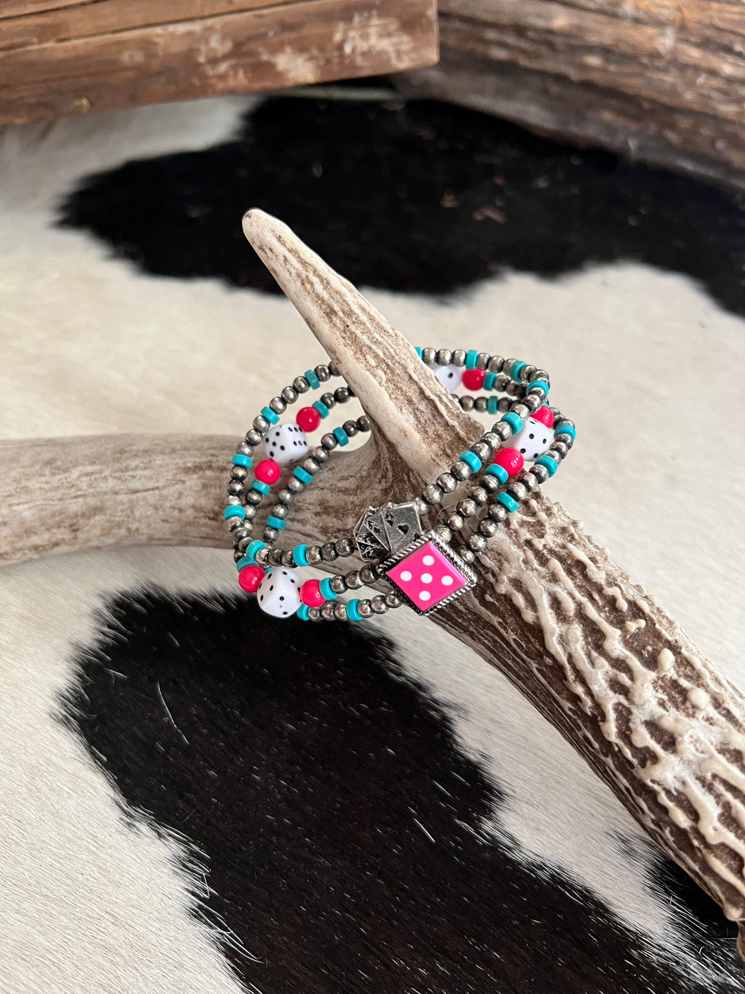 Stretch Bracelet Western Pink Gambling Style Three Strands
