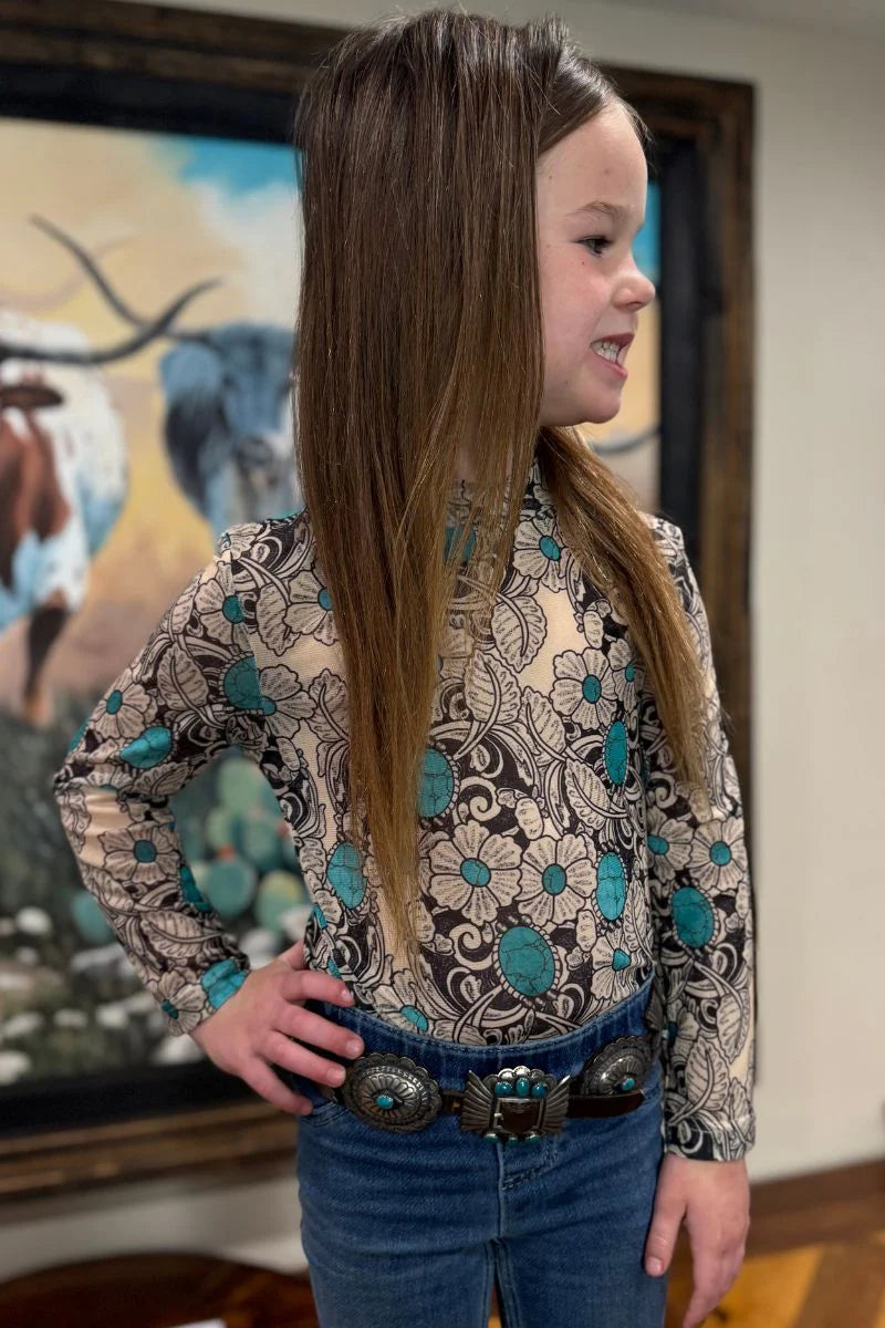 KIDS Sterling Kreek Tooled In Turquoise Button Up