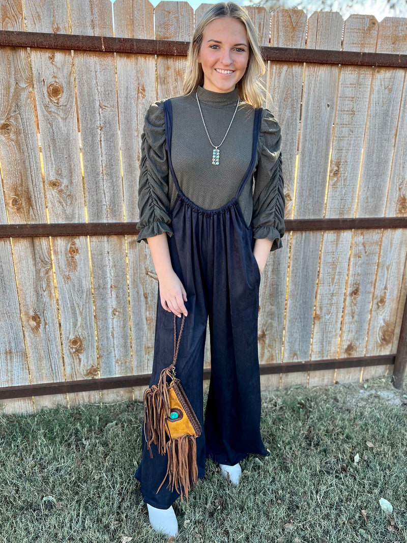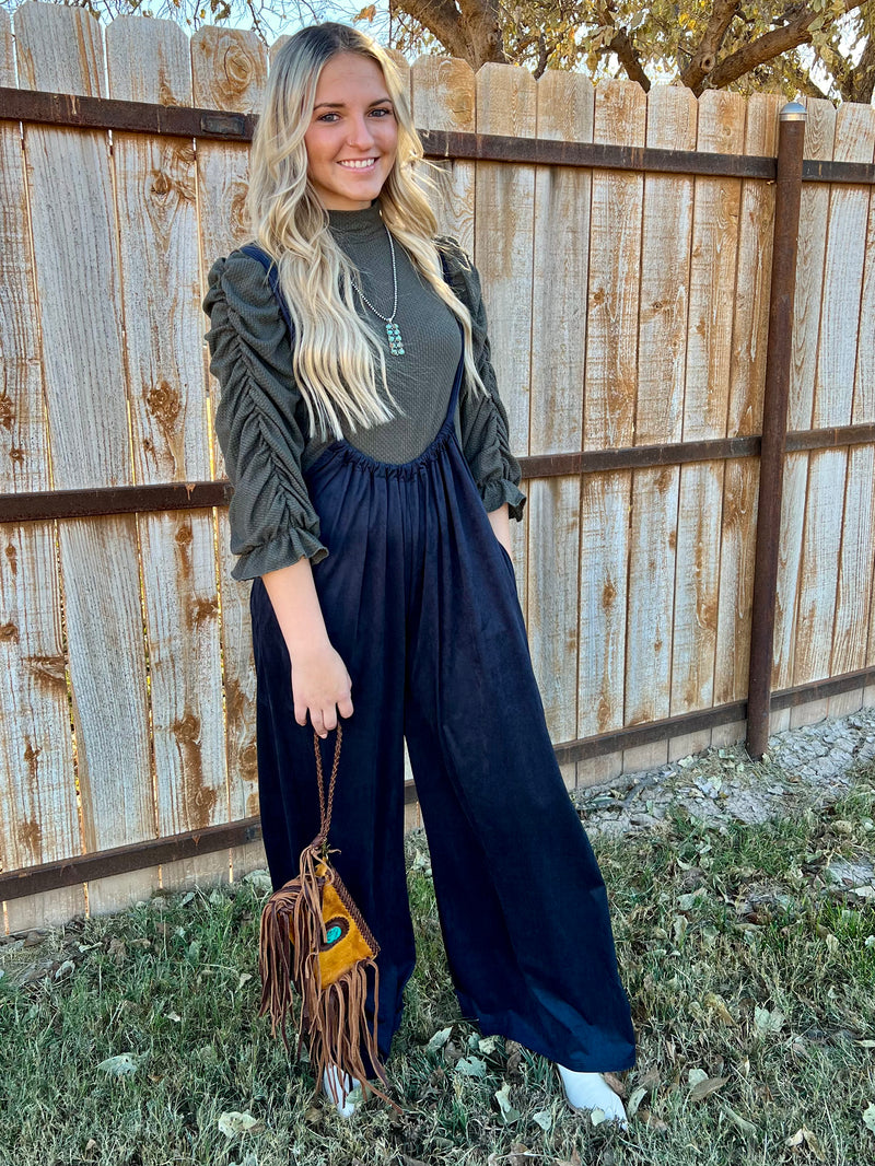 Are you looking for an outfit that's chic, versatile, and comfortable? Look no further than Black Velvet Cover-Somes. These black velvet low cut overalls feature a tie in the back and wide leg pants for maximum styling potential. Feel free to customize your perfect look - the possibilities are endless!
