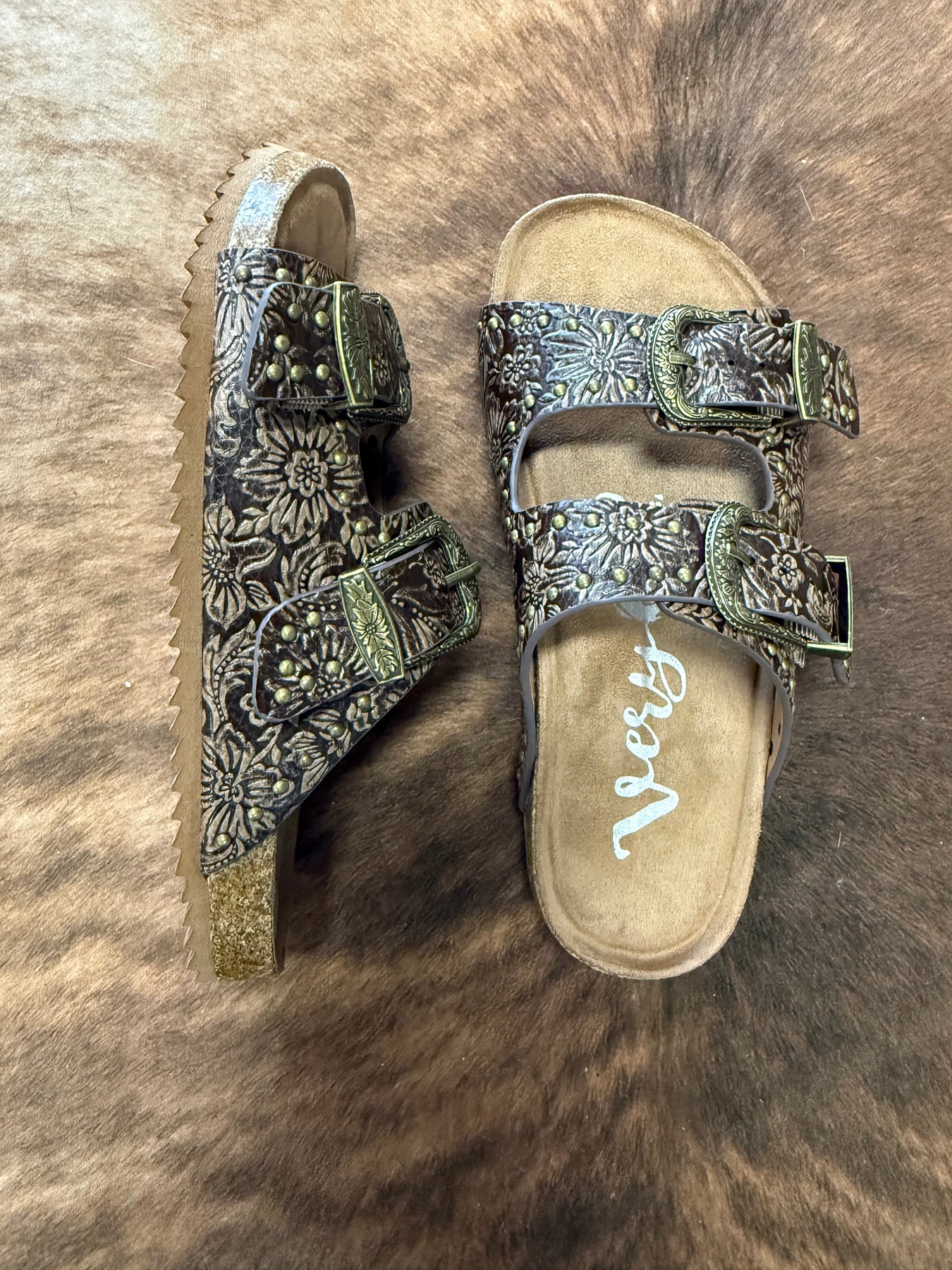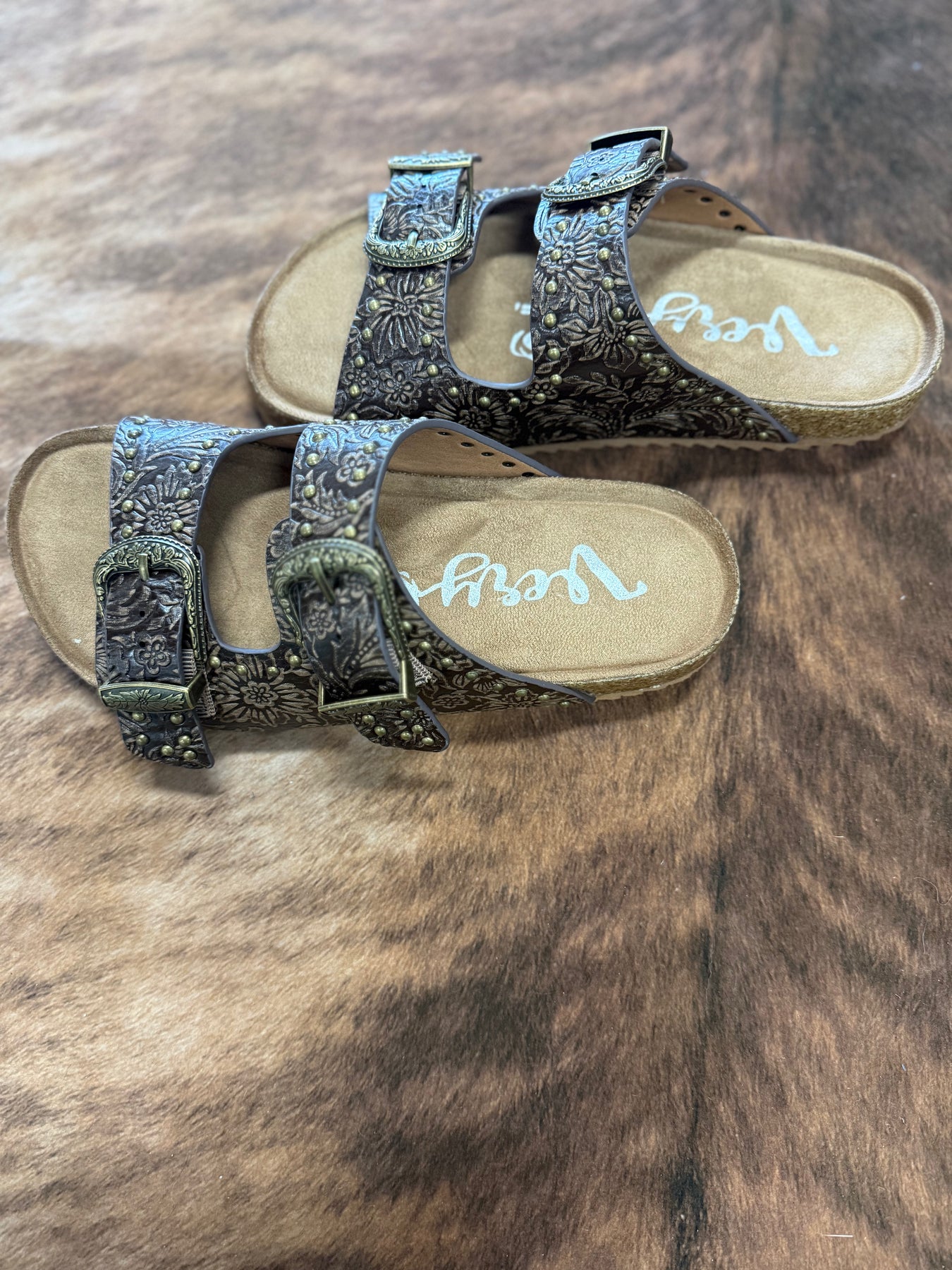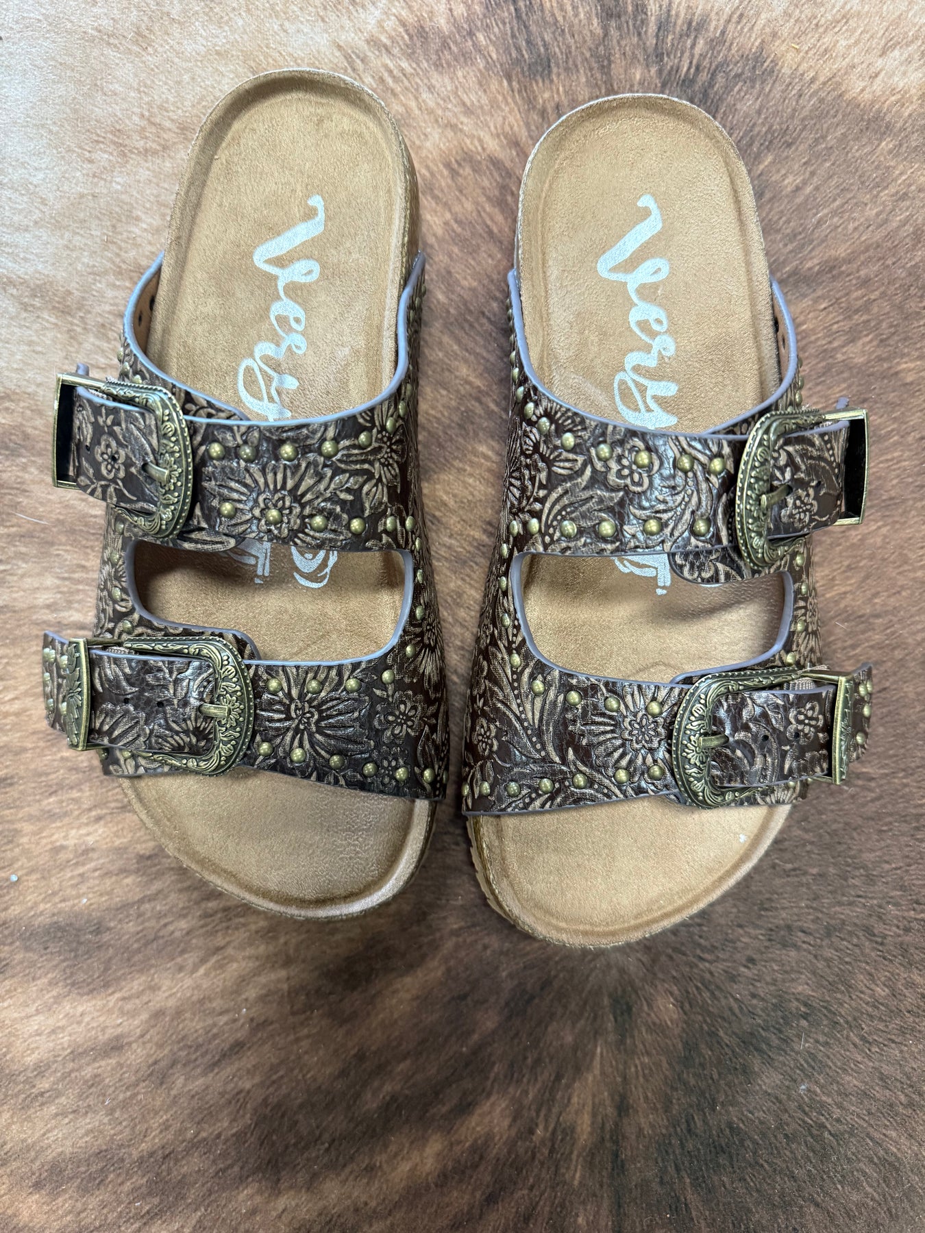 Very G Heidi Brown Studded Tooled Sandals I Gussied Up Online Boutique