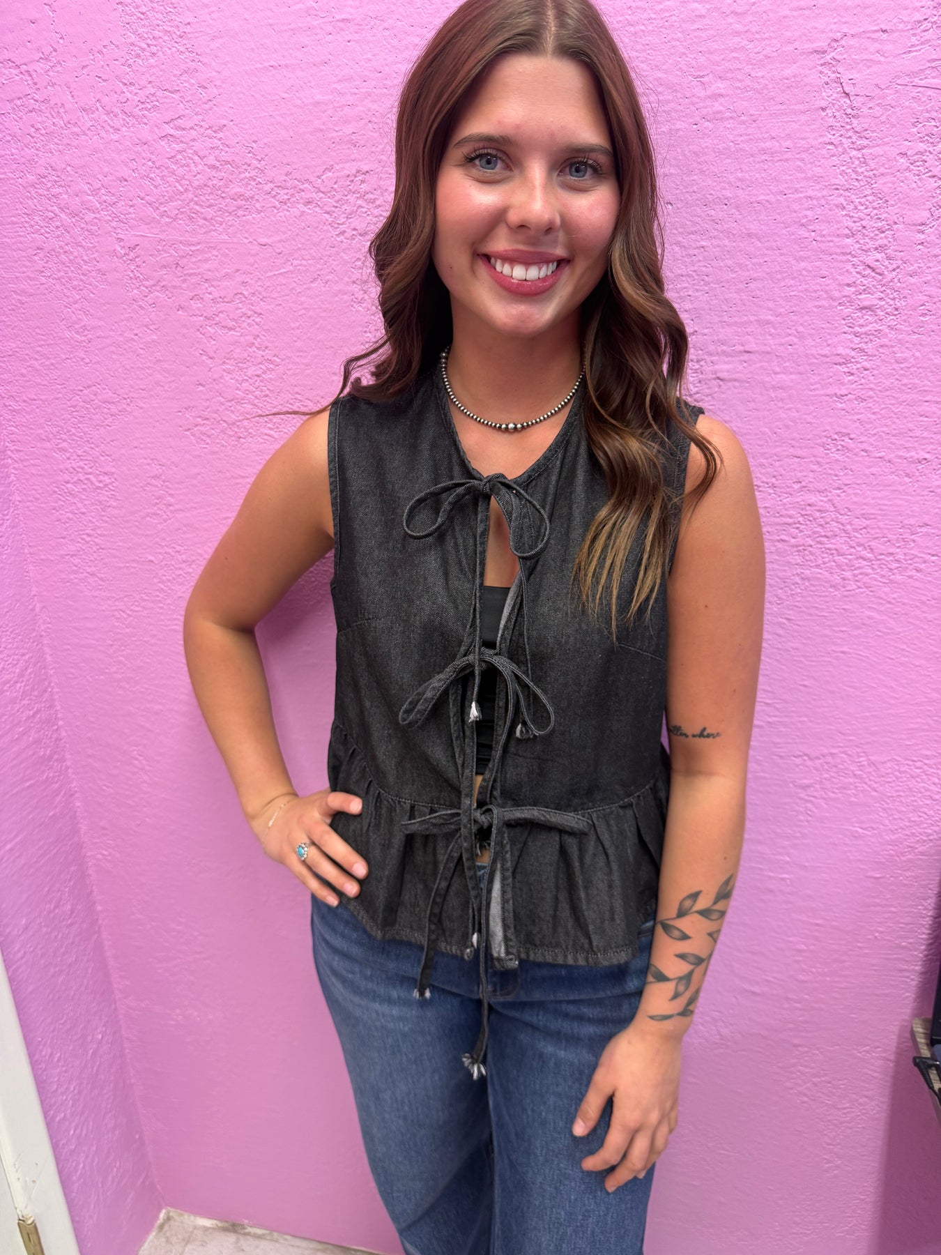 Black Denim Bow Tie Vest I Gussied Up Online Boutique
