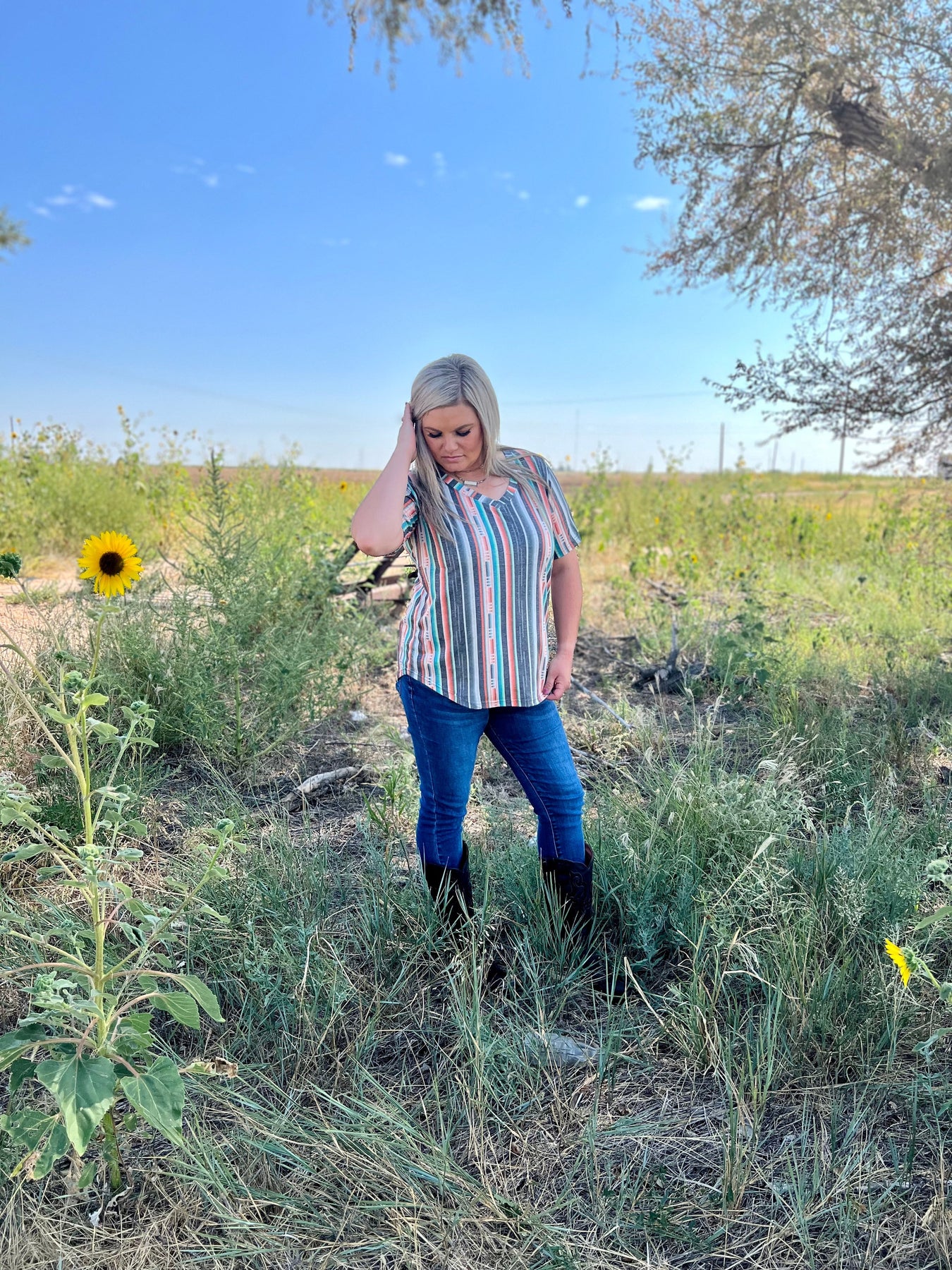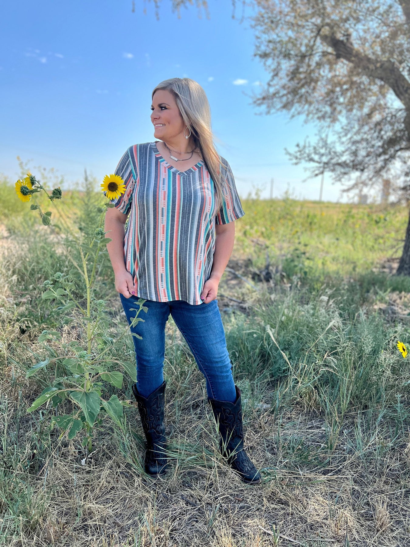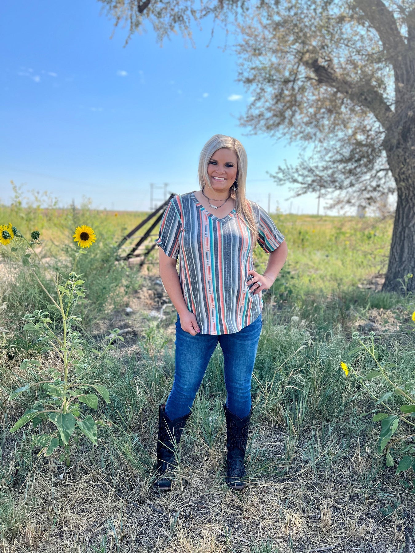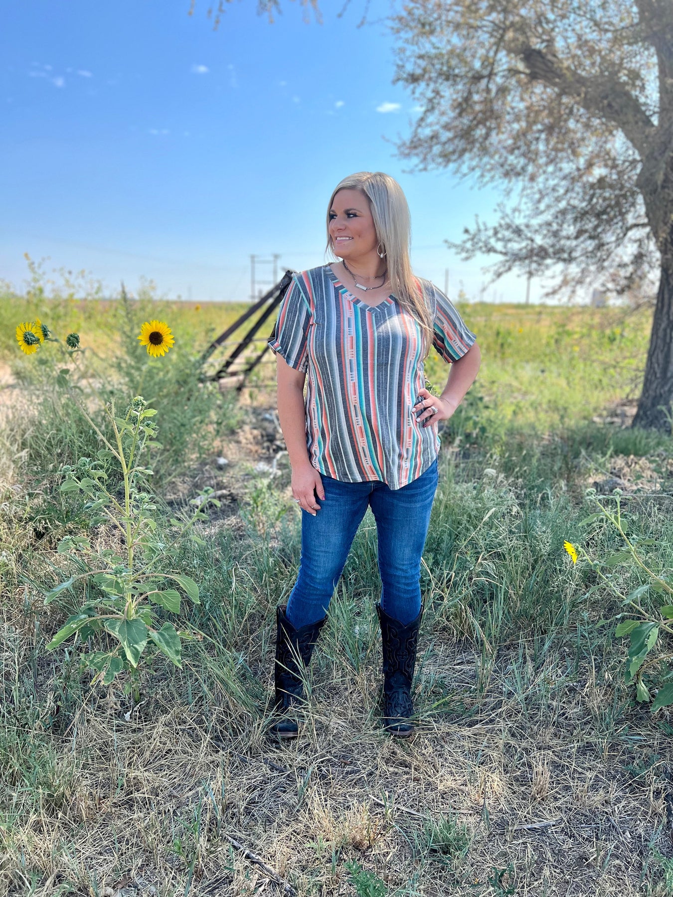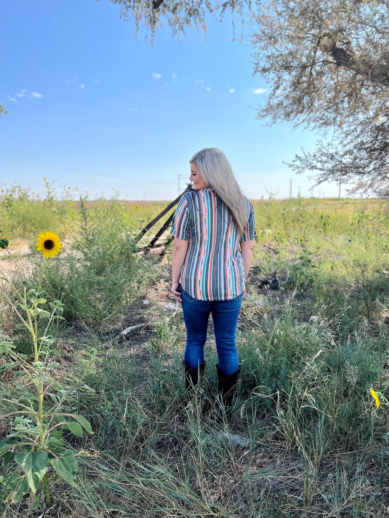 Look sharp and stand out from the crowd in this one of a kind serape-style vneck top from the Mayan Mountains! Featuring an intricate blend of vivid colors, this top will give your wardrobe a unique Mayan twist! Dare to be bold and rock the Mountains Top with style and confidence!