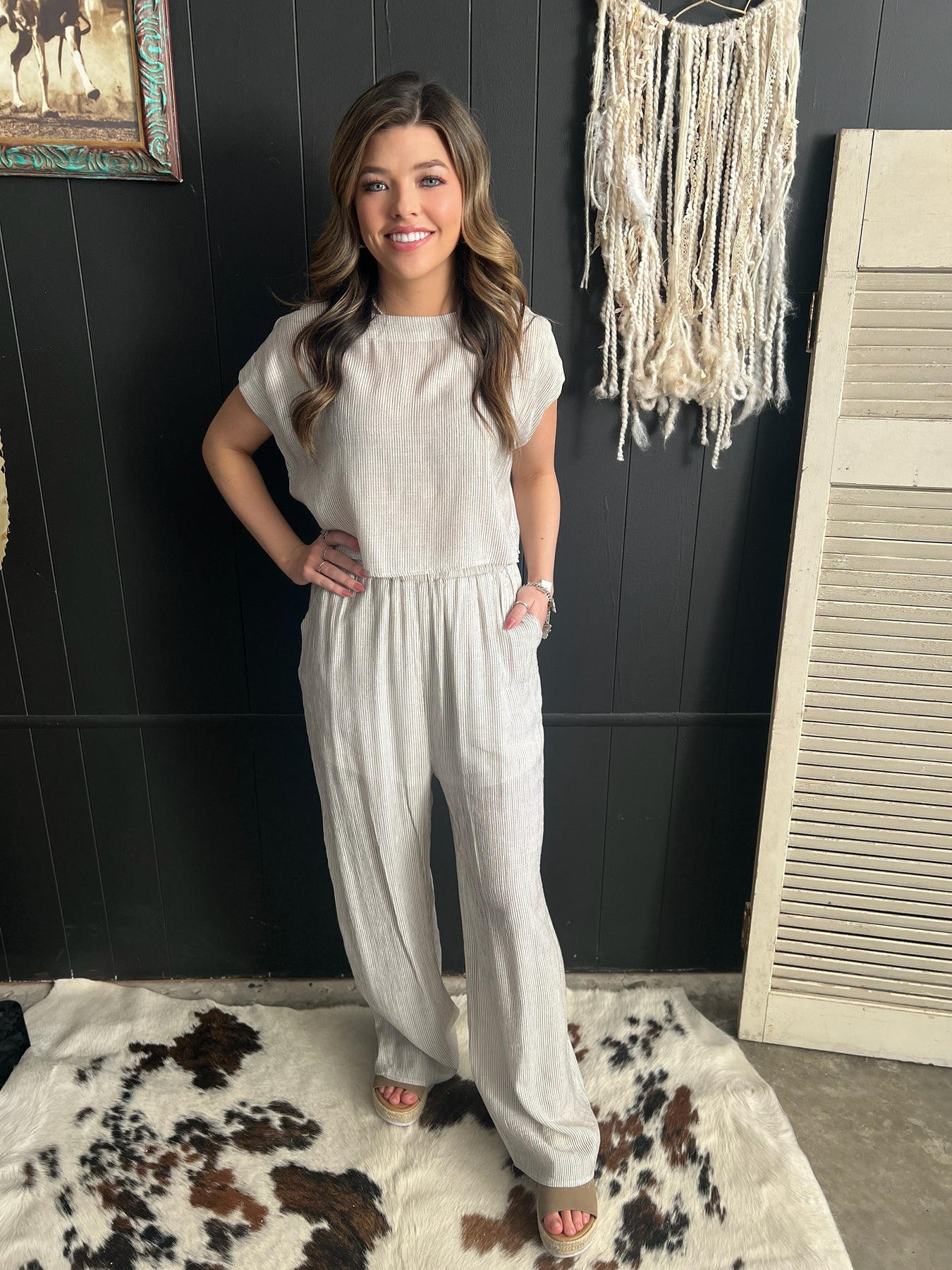 Natural Pinstriped Button Back 2 Piece Set* | Gussied Up Online Boutique