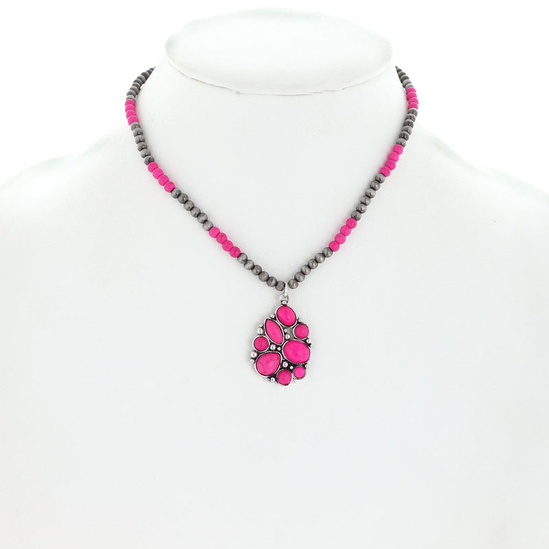 NATIVE AMERICAN STYLE TEARDROP CLUSTER SEMI STONE NAVAJO PEARL BEADED ADJUSTABLE NECKLACE IN SILVER TONE METAL