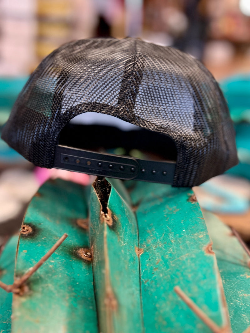 Saddle up with our Hippies & Cowboys Snap Back Cap! This black cap features a mesh back and a graphic of a Skeleton Cowboy. Show off your western style with the phrase "Long Live the Hippies and the Cowboys". Yee-haw! One size fits most