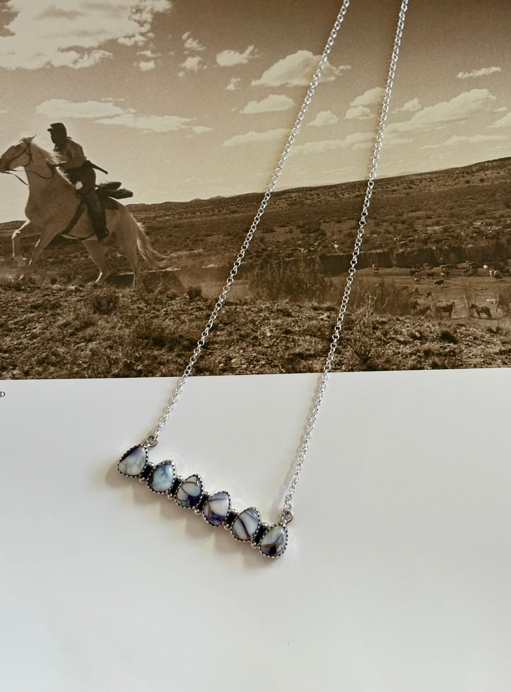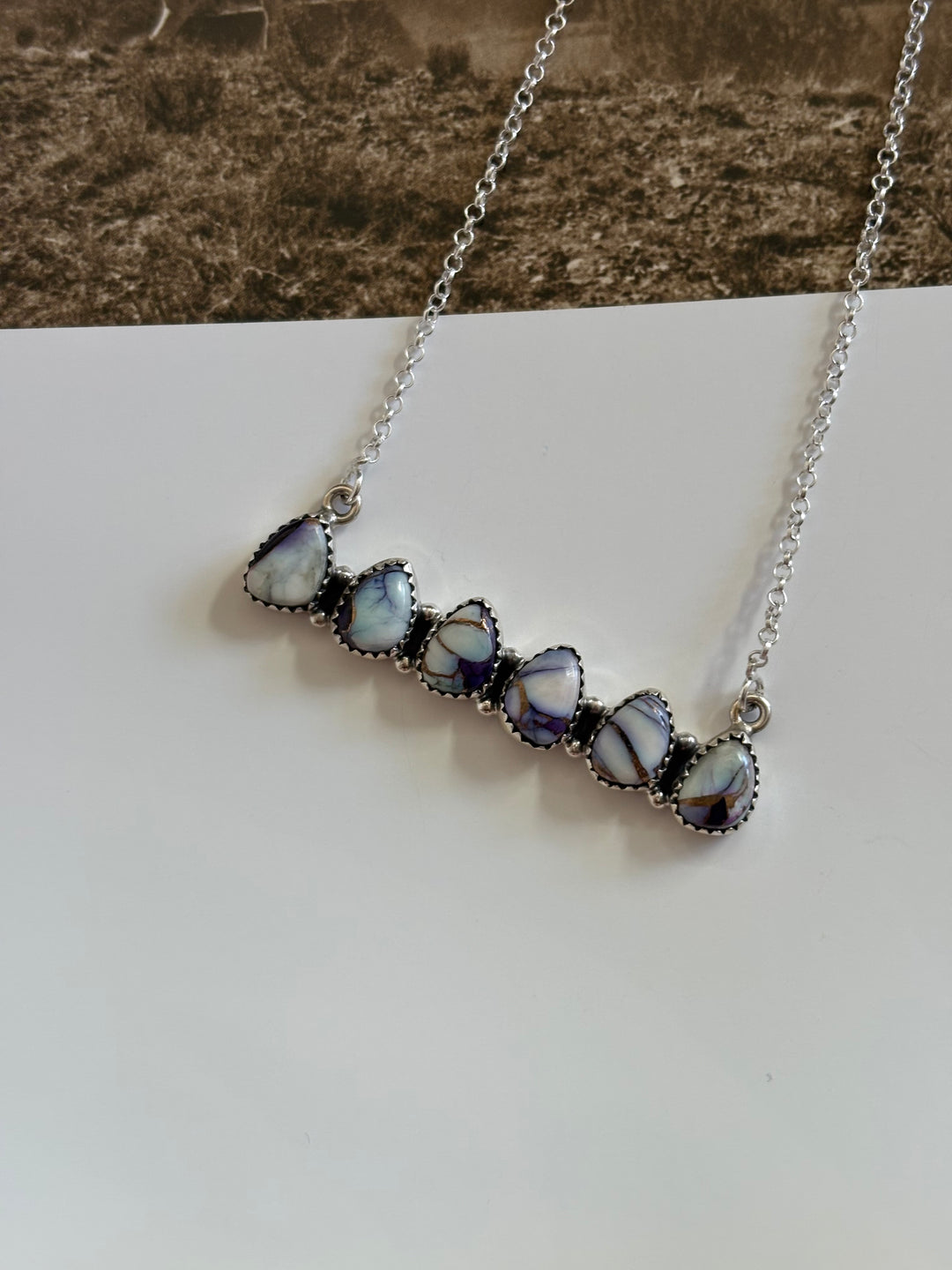 Violet Rose Cluster Bar Sterling Silver Hada Necklace
