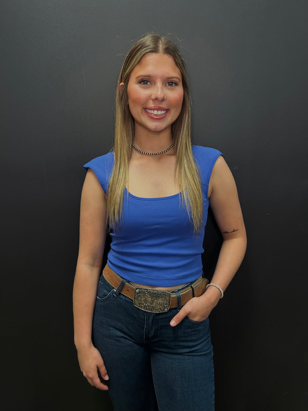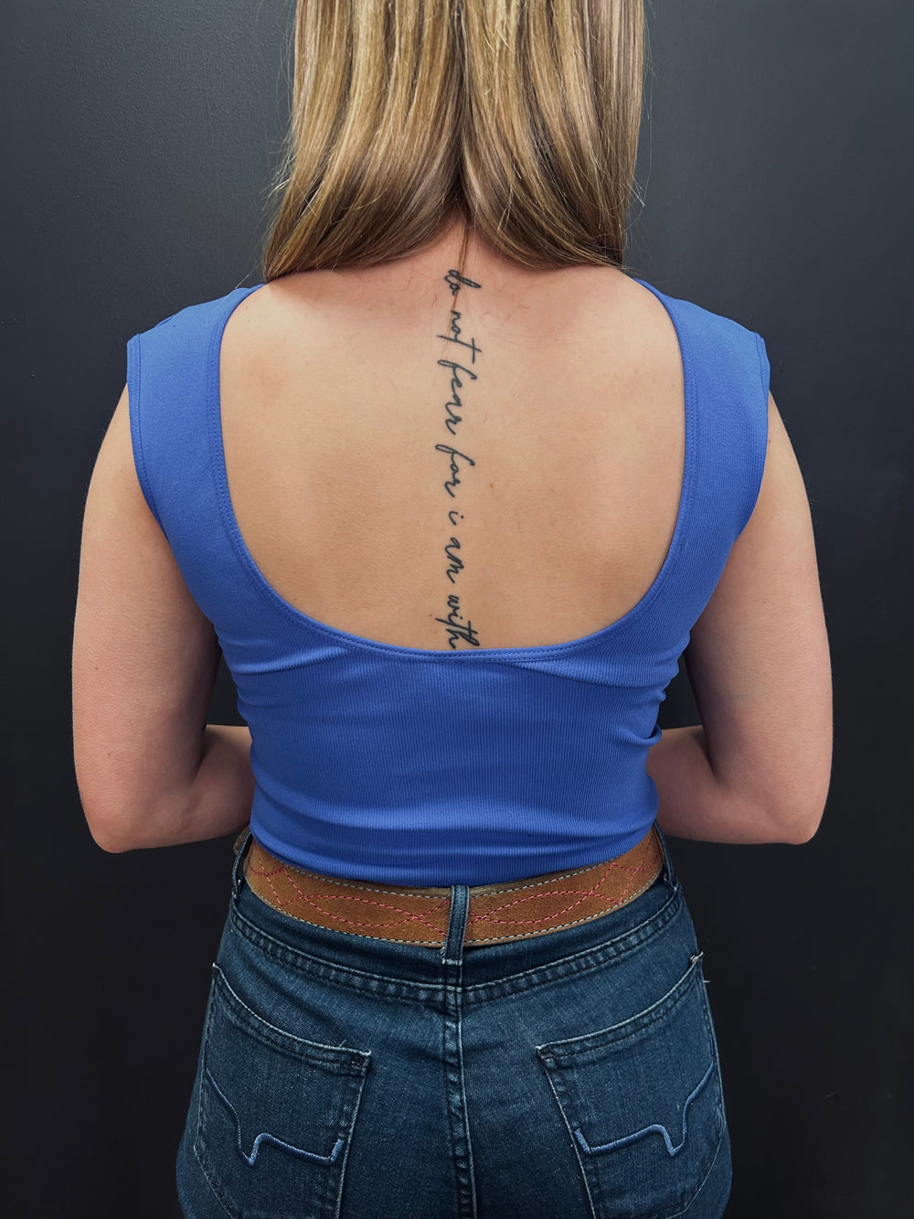 Marine Blue Seamless Deep Scoop Back Tank Top