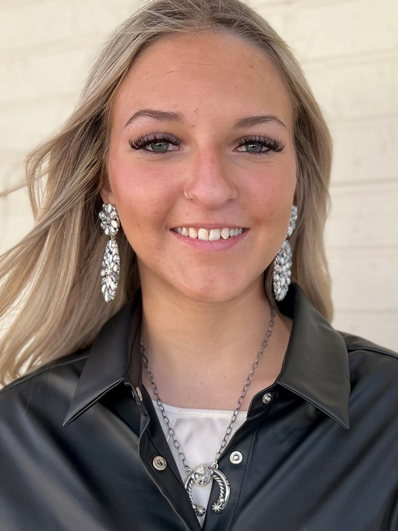 These Bilaganna Navajo Sterling Silver Earrings add a special touch of class to any ensemble. Handcrafted by Native Americans using genuine Navajo Sterling Silver, they feature beautiful Wild Horse Stones and a unique concho design. Perfect for any occasion.