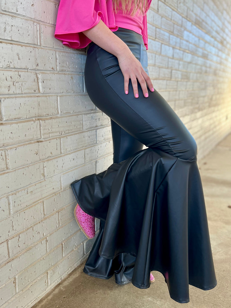 Who says you can't be comfy and stylish? Our Smoke Show Faux Leather Bell Bottoms will have all eyes on you with their high waisted fit and flare silhouette. These black faux leather beauties are perfect for a night out, adding a touch of edge to any outfit.