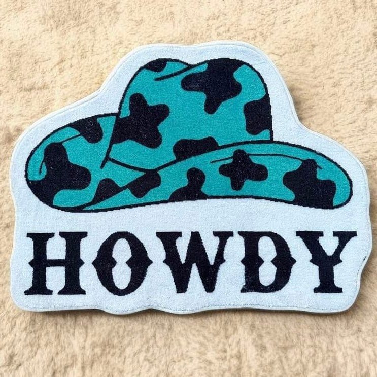 Add some personality to your bathroom with our Western Style Bathroom Mats! Choose from 4 quirky designs featuring a cowboy on a bronc, a wagon wheel, a highland cow, or a howdy hat. These mats not only bring a touch of the Wild West into your home, but also provide a soft and absorbent place to step on after your shower. Yee-haw!