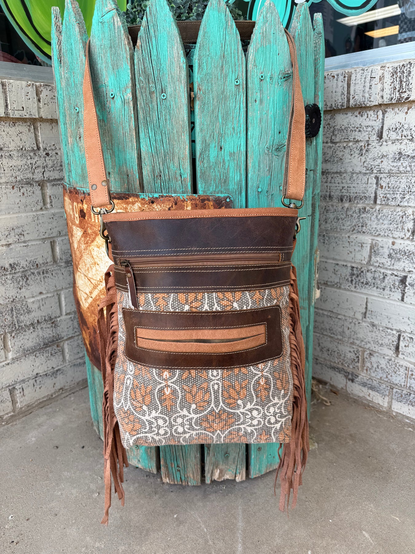 Add a splash of adventure to your look with the Desert Mesa Fringe Bag. Crafted from durable canvas and leather, it features playful fringe details and multiple pockets to keep your essentials organized. The 52" adjustable and removable shoulder strap lets you customize your carry style for every outing. Perfect for those who love function mixed with a bit of fun flair!