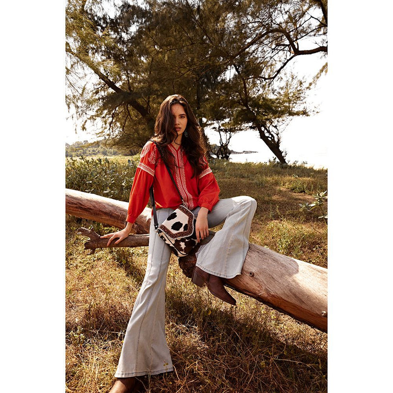 This utterly stunning bag offers a beautiful design with hair-on hide framed perfectly by hand-tooled leather in a timeless pattern. Special stitching around the top flap adds special, hand-made detail. The interior has a zippered-pocket and zipper-close top. The back is ebony leather, also with a zippered pocket. Matching adjustable leather shoulder strap is fully removable. A spectacular addition to your collection!