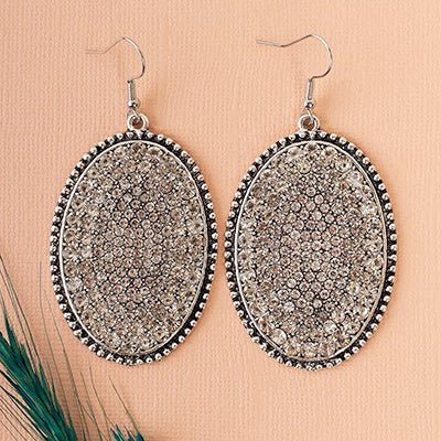 Look and feel your best with these timeless Rodeo Cowgirl Earrings. Offered in two color choices, rhinestone and iridescent rhinestone, these stunning earrings feature an oval dangle and fish hook back, making them a sophisticated and elegant addition to any outfit. At 2" in length, these earrings add a luxurious yet delicate touch to any ensemble.