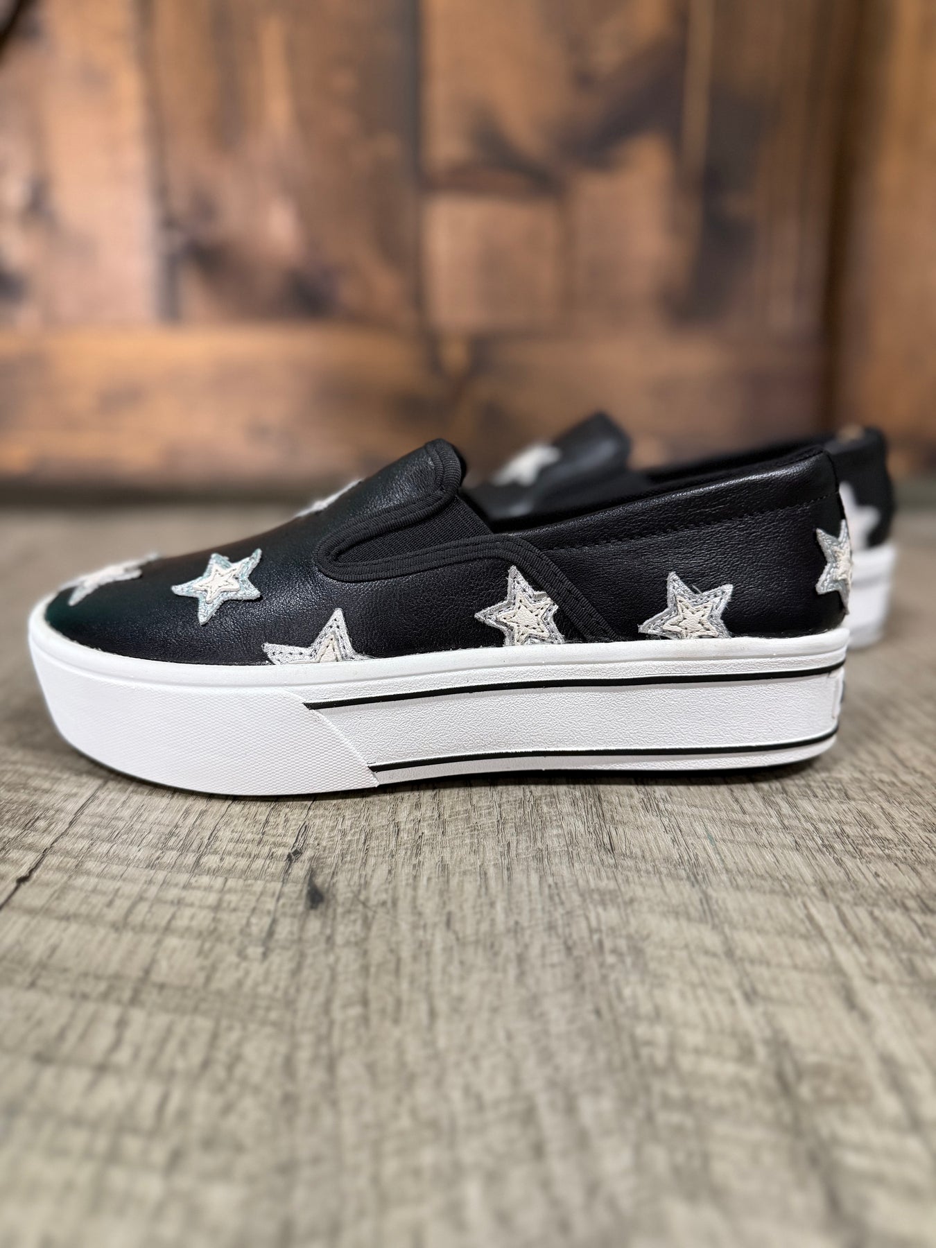 Step into effortless style with the Women's Ariat Skylar Star Slip On Shoes. These black low-top beauties with Star Details, feature a 3" platform sole and round toe, blending classic cool with a playful edge. Feel the bounce with the FLX Foam™ midsole and enjoy every step cushioned by the open cell insole. The Duratread™ sole keeps you going with maximum wear resistance, while the slip-on design ensures a perfect fit. Plus, your purchase supports responsible leather production from certified tanneries—fashion with a conscience never looked so good!
